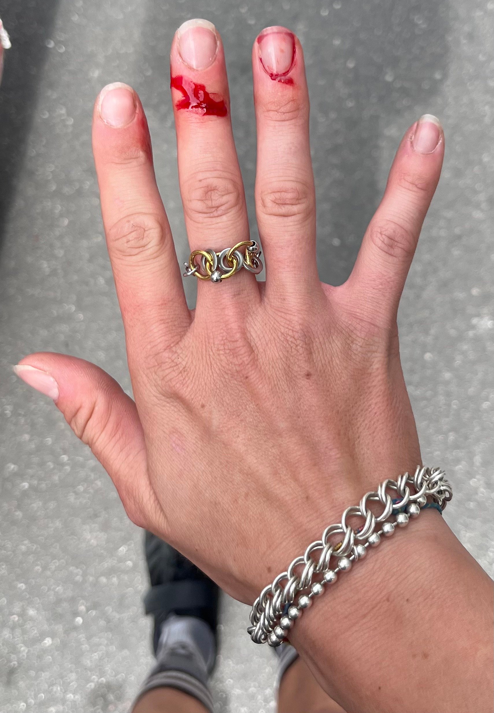 Le bijou a été testé et approuvé par la créatrice, il ne gène pas les doigts (même avec le fermoir)