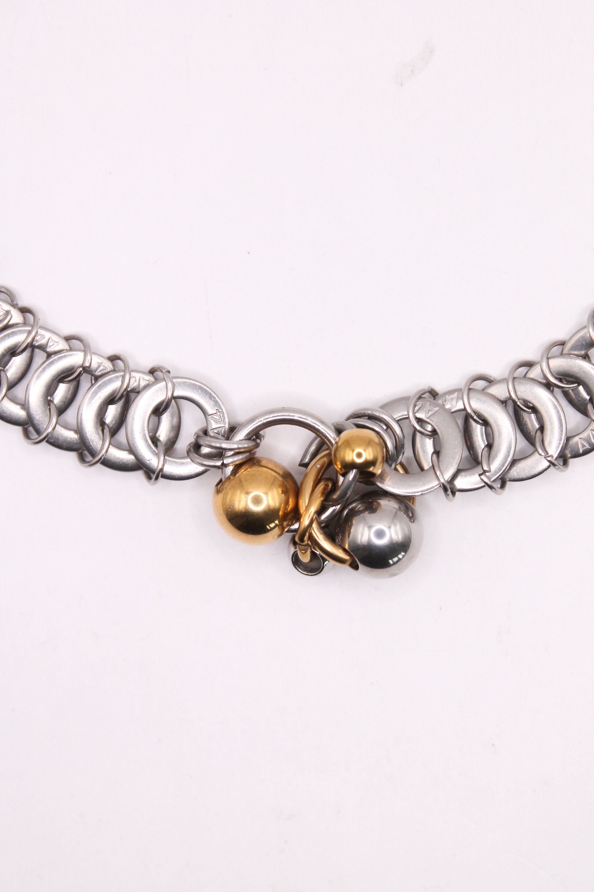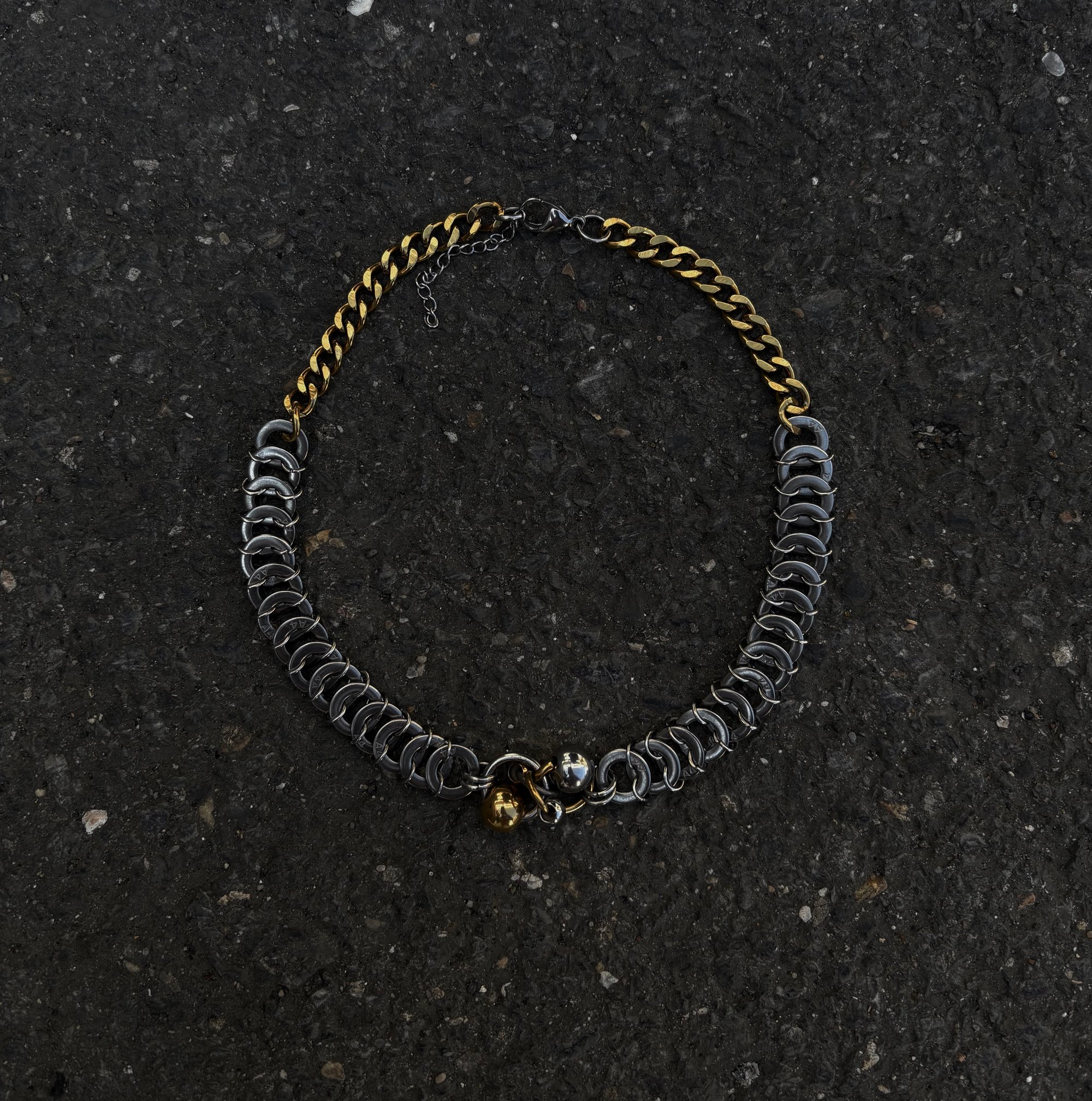 Collier fabriqué à la main à partir de rondelles industrielles et de perles métalliques.